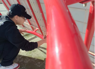 学生第一党支部全体成员到达二号操场指定地点,考勤完毕后开始志愿服务活动。支部书记鲁玲老师分工安排,支部同志们将自带的水盆接满水,并将抹布洗净以后,分为“两人一组,一组一球桌”的工作小组。认领脏兮兮的乒乓球桌,秉承“把蓝天印在乒乓球桌上”的原则和清扫标准,支部成员挥动抹布,有的采用全身水洗,有的采用抹布除尘,在清理乒乓球桌面以后,发现球桌下的支架上面也布满了灰尘,为了更好的达到清洁的目的,各小组互相帮助,将乒乓球桌掀翻以后连同球桌的支架一同清理。阳光和煦,同学们干劲十足,互帮互助,有说有笑,场地边还有上课的公体同学,看到自己即将使用的乒乓球桌焕然一新,纷纷为我支部的行动点赞!