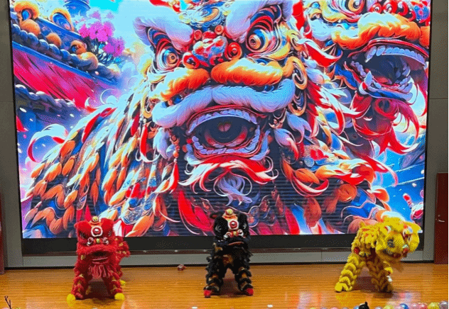晚会以中华传统体育舞龙舞狮《盛世中华》表演拉开晚会的序幕。在欢快的音乐声中,身着华丽服装的三头“狮子”,欢快跳跃穿梭于舞台之上,他们的动作矫健而协调,将龙狮的灵动与神韵展现得淋漓尽致,赢得了观众们的阵阵喝彩。